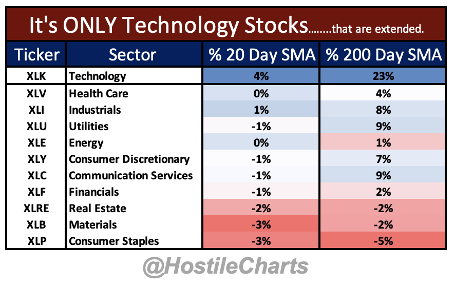 Tech’s the only sector stretched by any real measure.