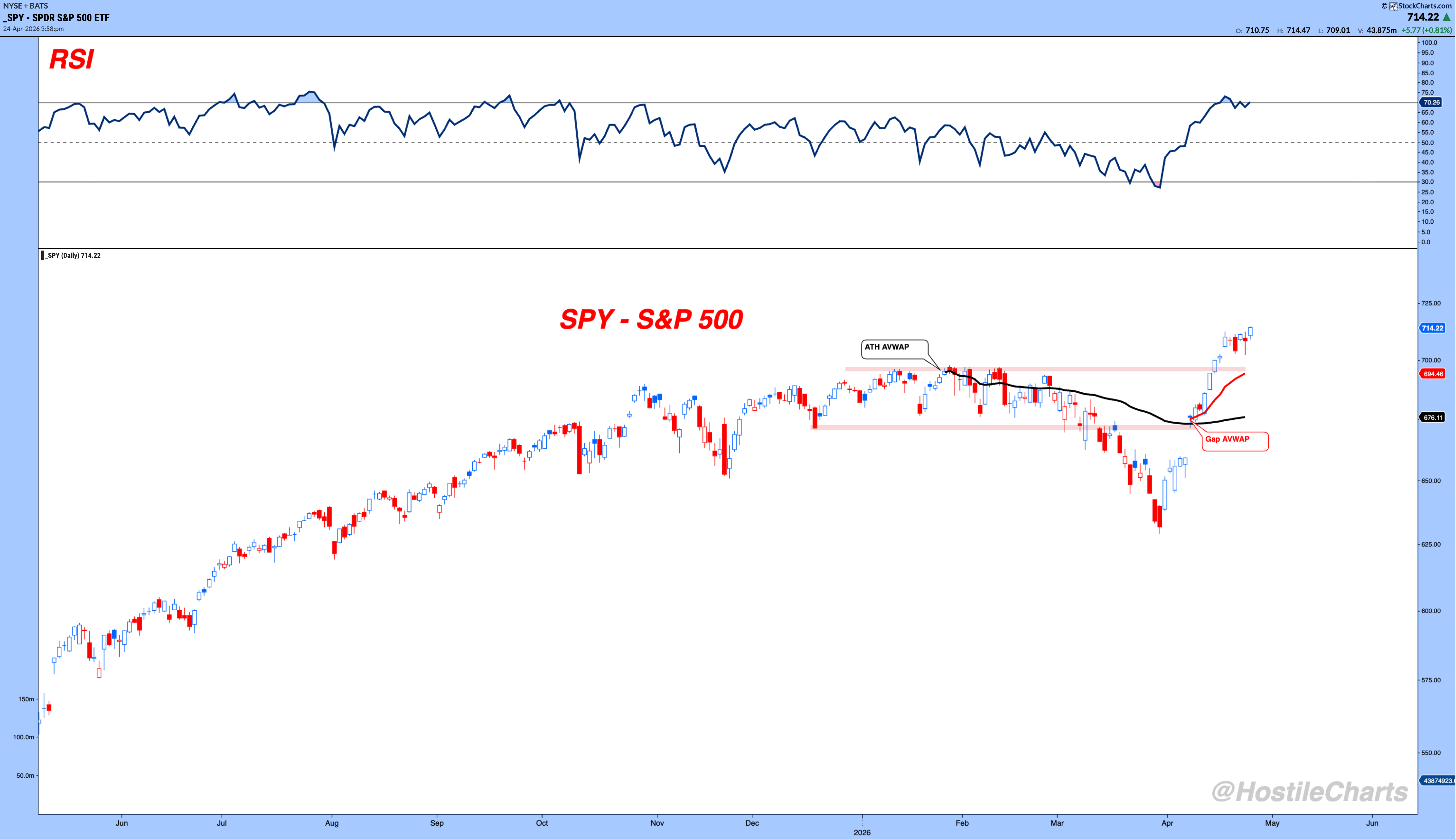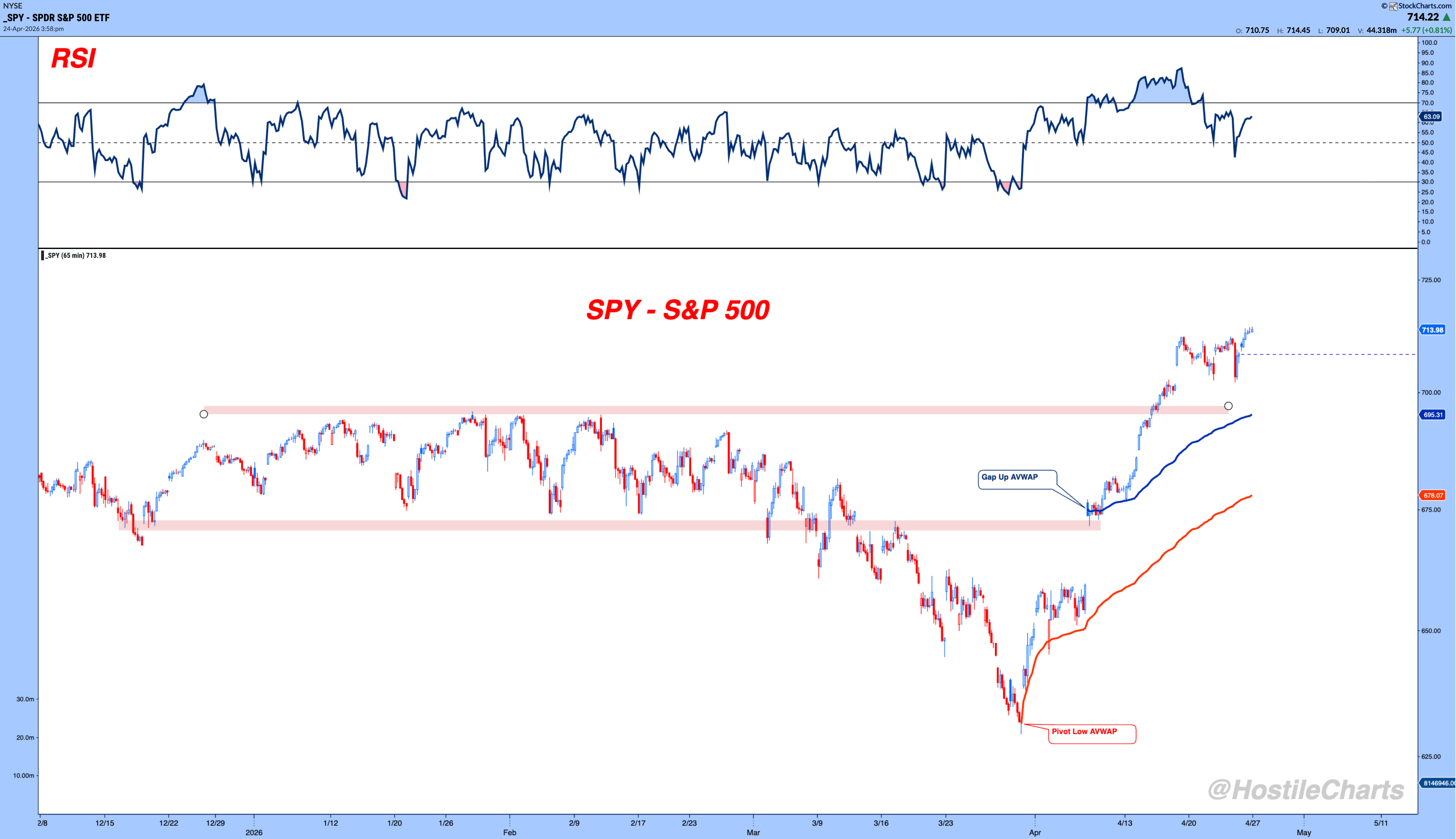 The Pivot Low AVWAP anchored to the bottom of the selloff and the Gap Up AVWAP anchored to the recovery both serve as dynamic support.