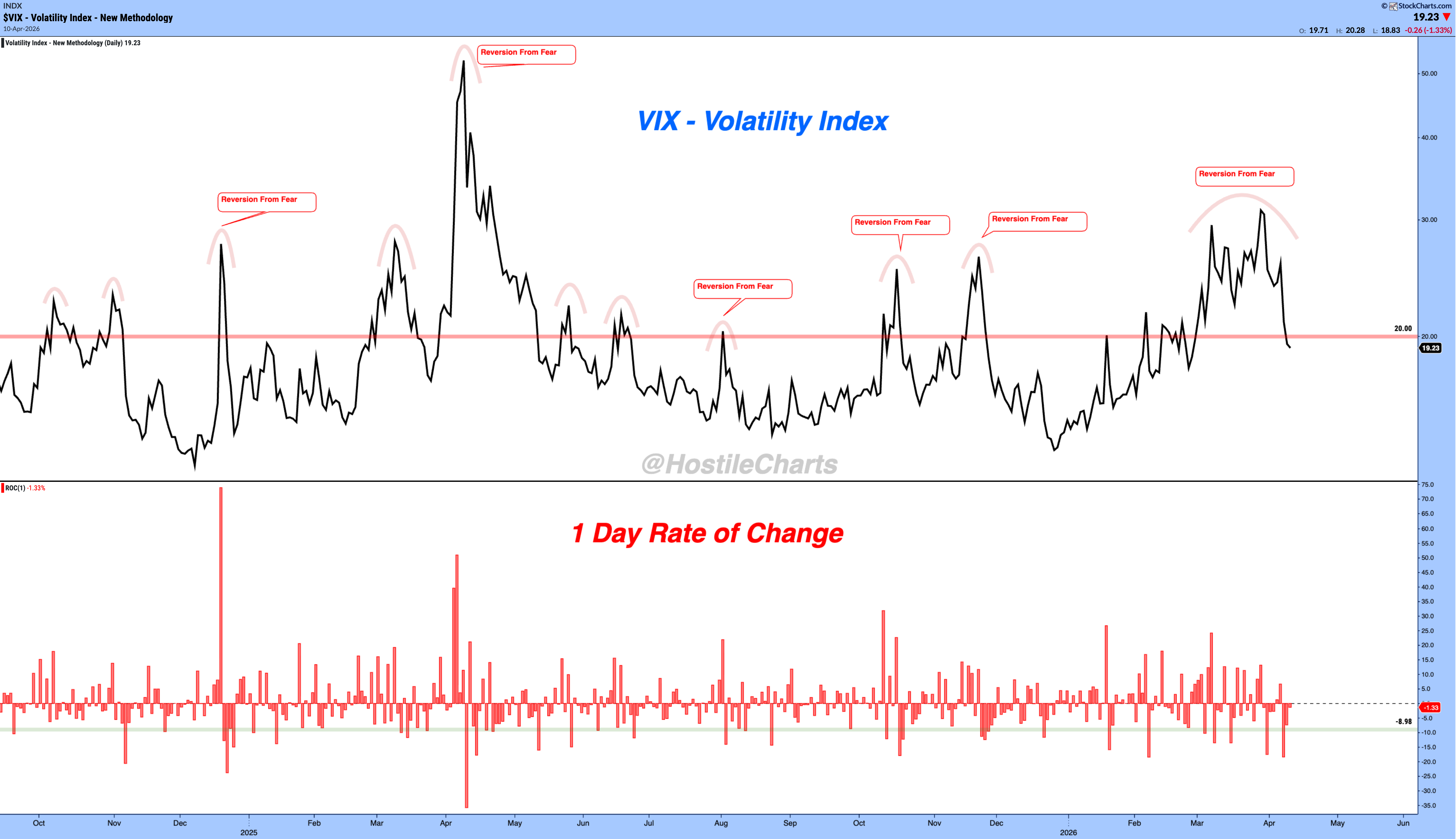 The VIX spiked, then began to reverse. That’s constructive. You don’t buy fear, you buy the reversion from fear.